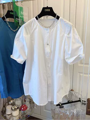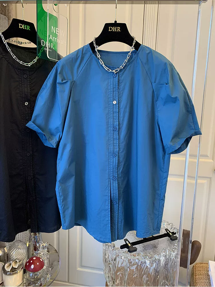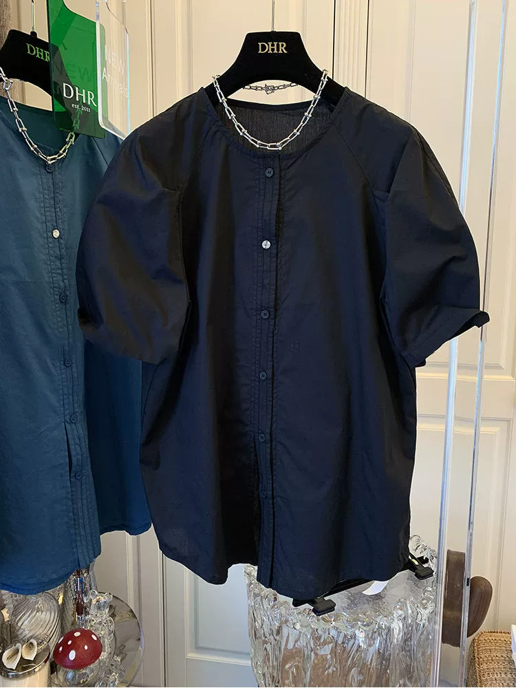 | nameOriginal | Vintage silver button slit loose cotton short-sleeved shirt |