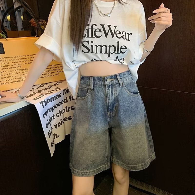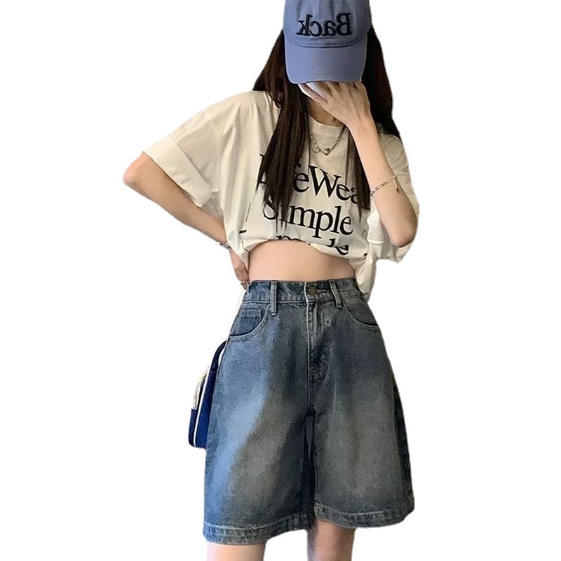 | nameOriginal | Vintage Simple Jeans Women's Loose Summer New High Waist Five-point Pants Slimming All-match Five-point Straight Pants Trendy |