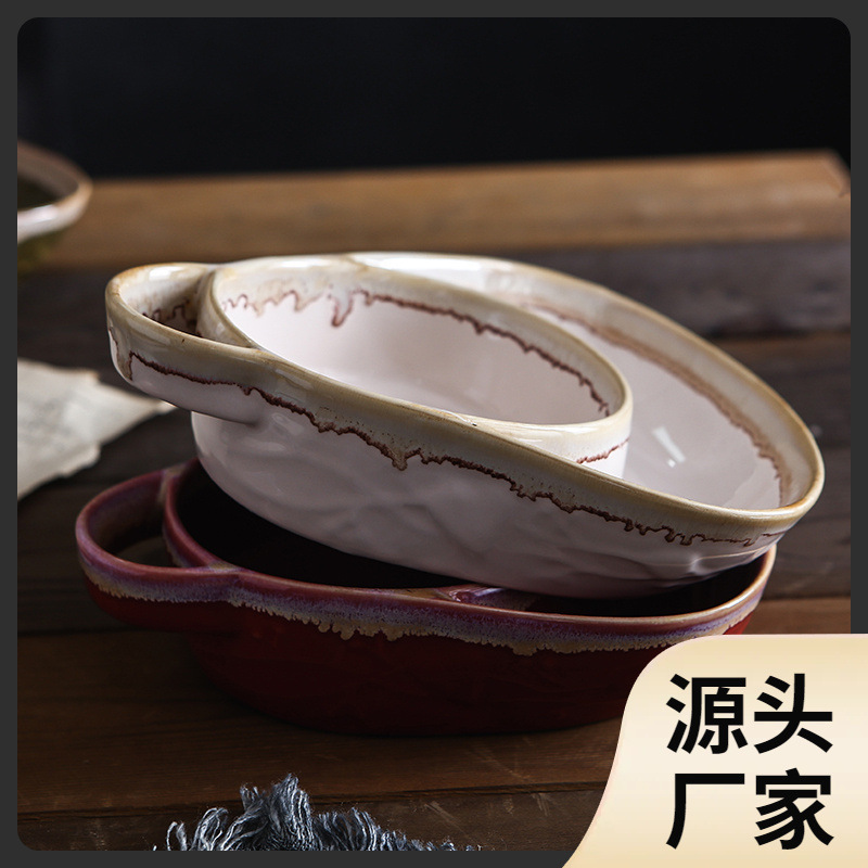 | nameOriginal | Vintage Single Handle Breakfast Split Ceramic Baking Plate Creative Baked Rice Dessert Fruit Salad Plate Personalized Restaurant Tableware |