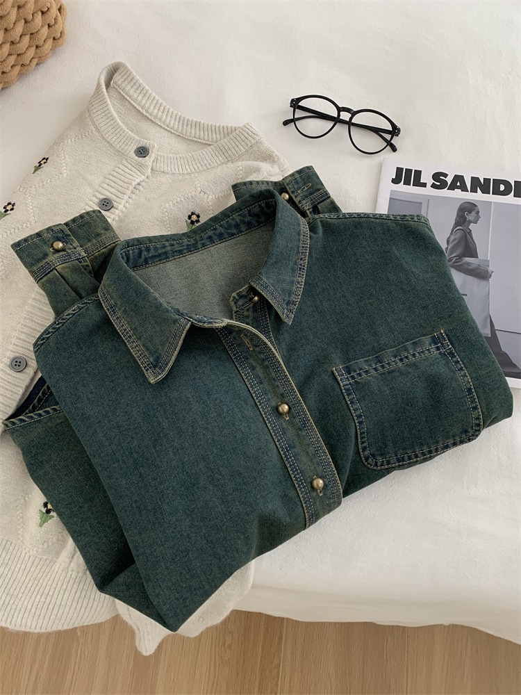 | nameOriginal | Vintage Small Gold Button Denim Coat Women's Loose Casual Age-reducing All-match Spring New Arrival Fashionable Lapel Shirt Cardigan |