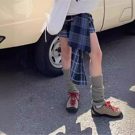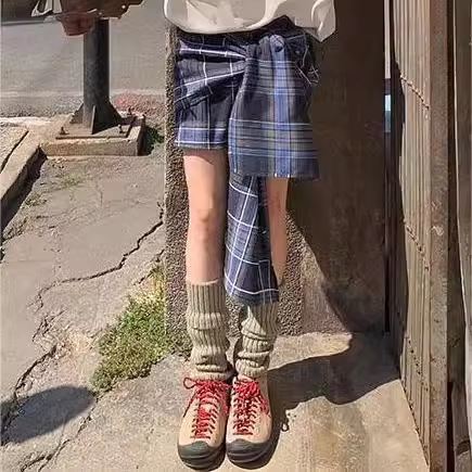 Vintage Spice Girl Lace-up Plaid Skirt Women's 2024 New Western Style College Style Casual High Waist A- Line Skirt