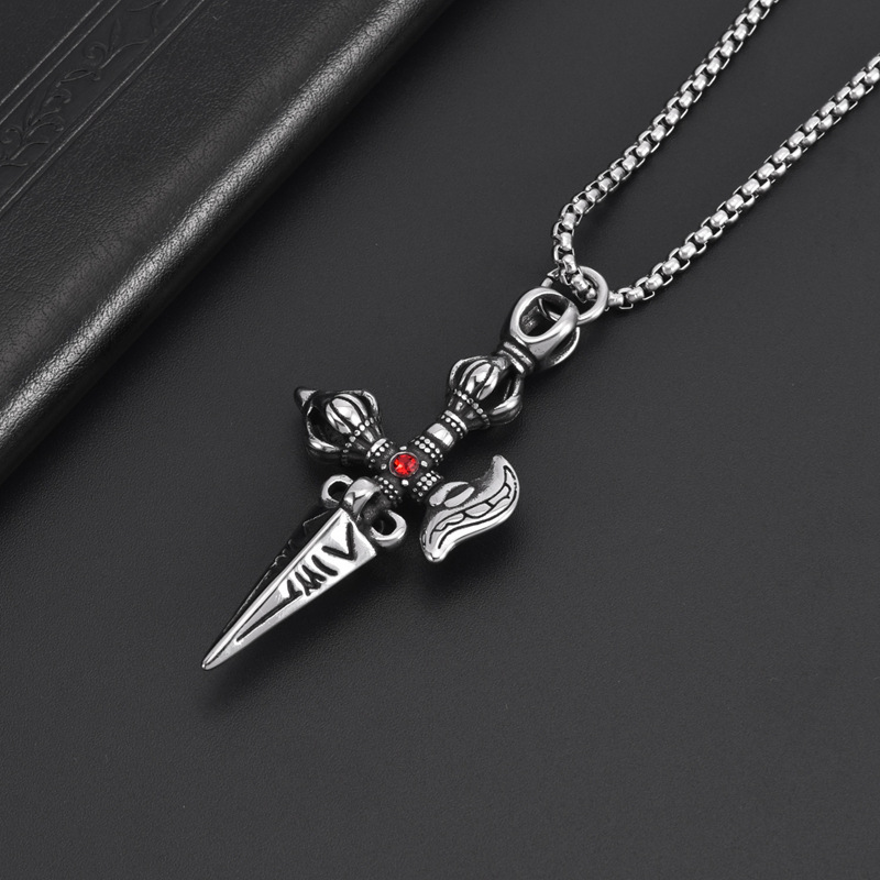 | nameOriginal | Vintage Stainless Steel Cross King Kong Xu Men's Pendant Creative Pendant with Red Diamond Punk Style Jewelry Famous Ethnic Style Pendant |