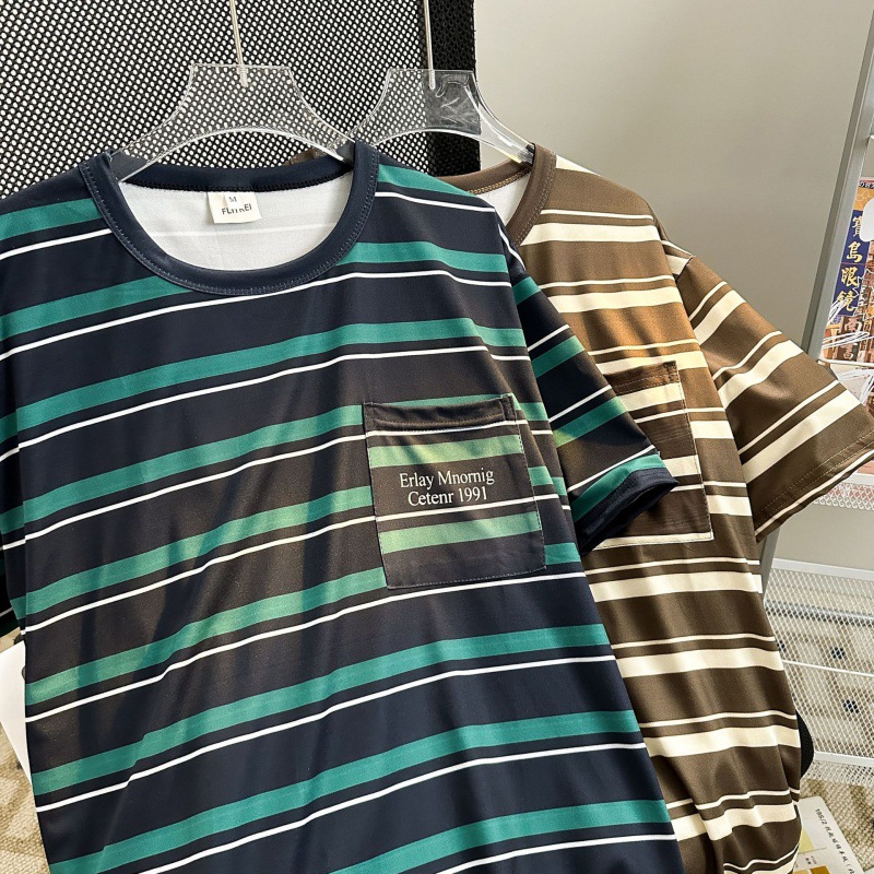 | nameOriginal | Vintage Stitching Striped Short-sleeved Loose T-shirt Men's and Women's Summer Thin Loose All-match Casual Base Half-sleeved T-shirt |