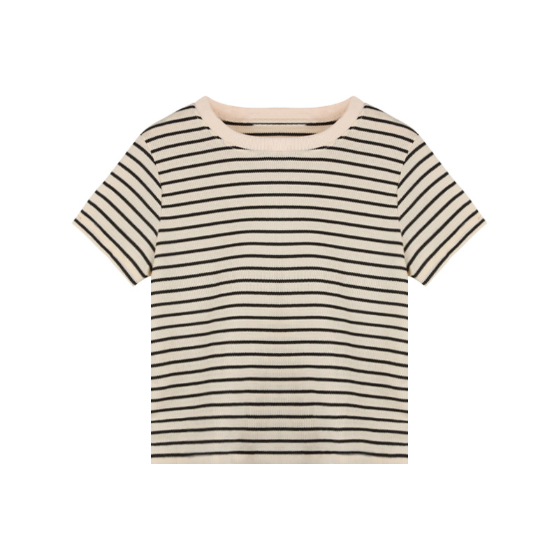 | nameOriginal | Vintage Striped Short-sleeved T-shirt Women's Design Crewneck Base Shirt 2023 Summer Loose Casual Student Top Trendy |