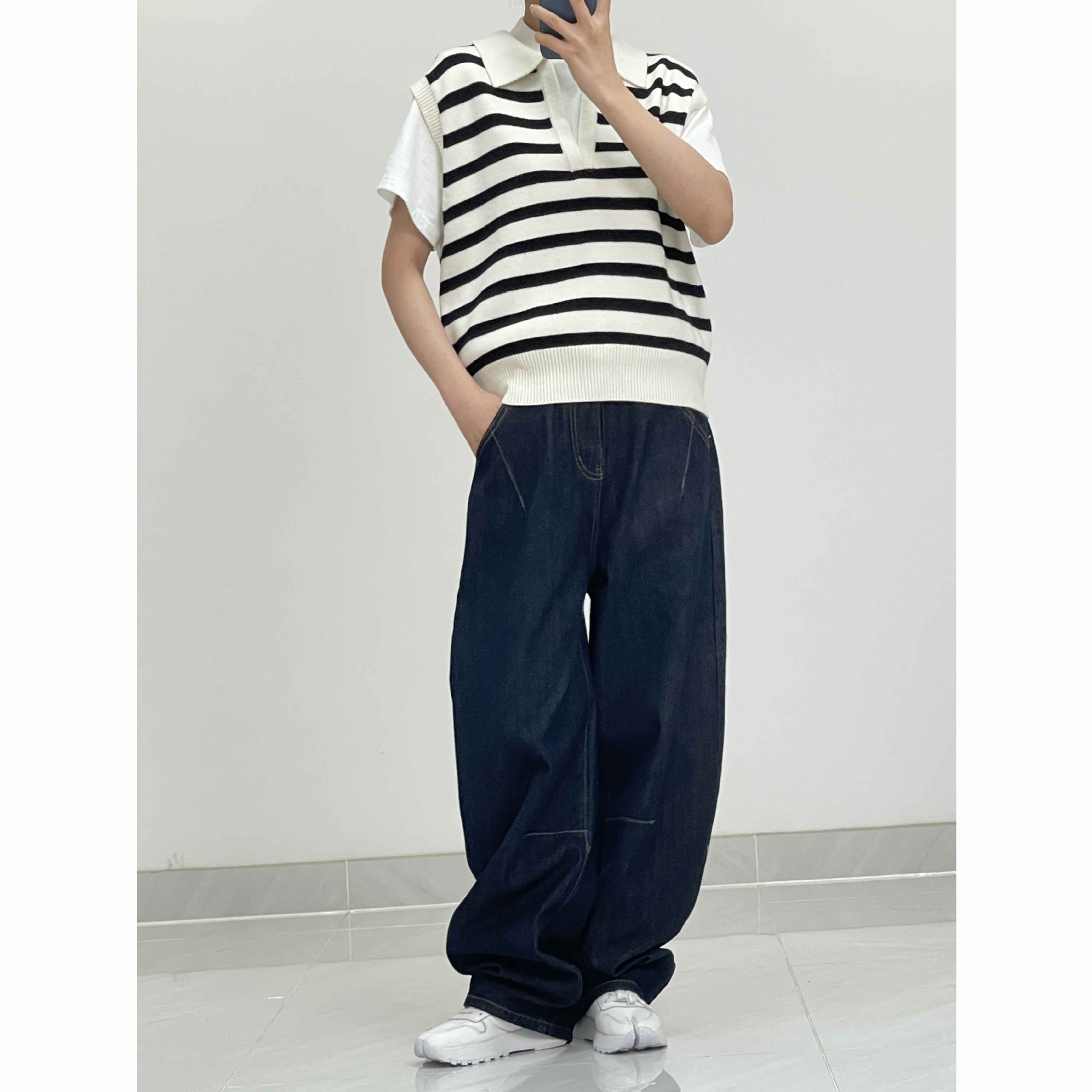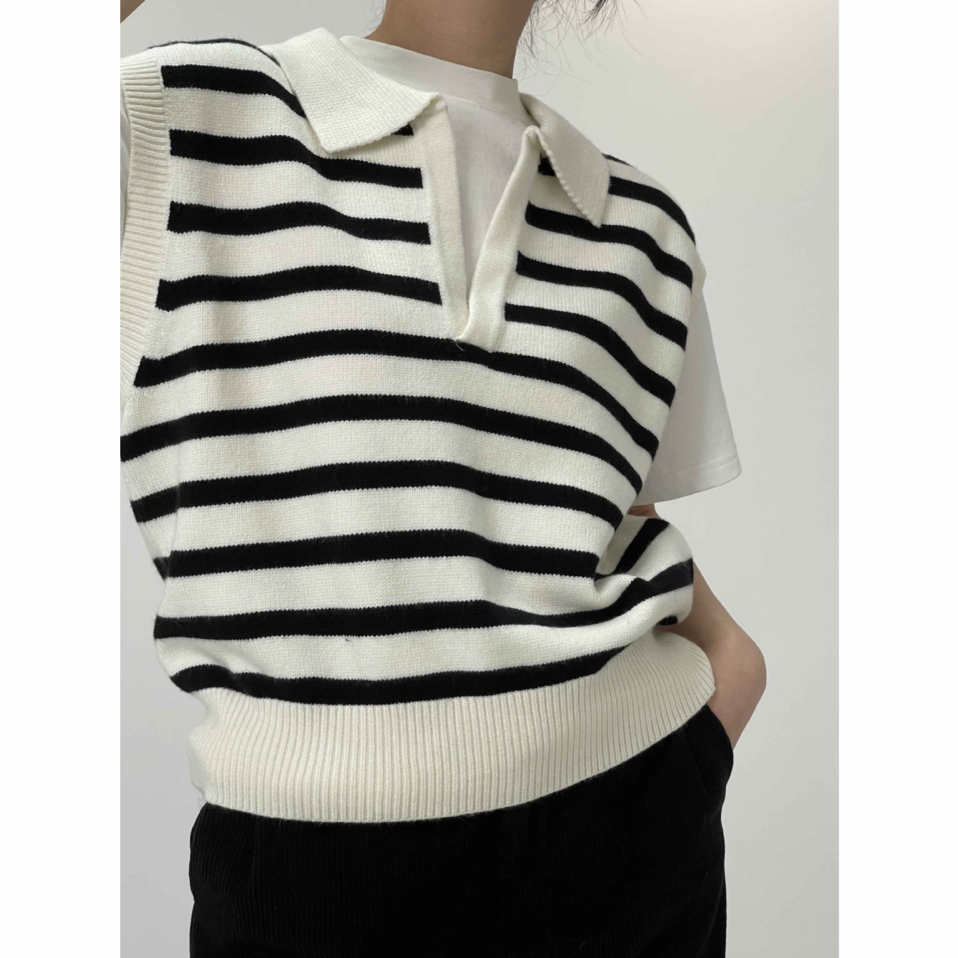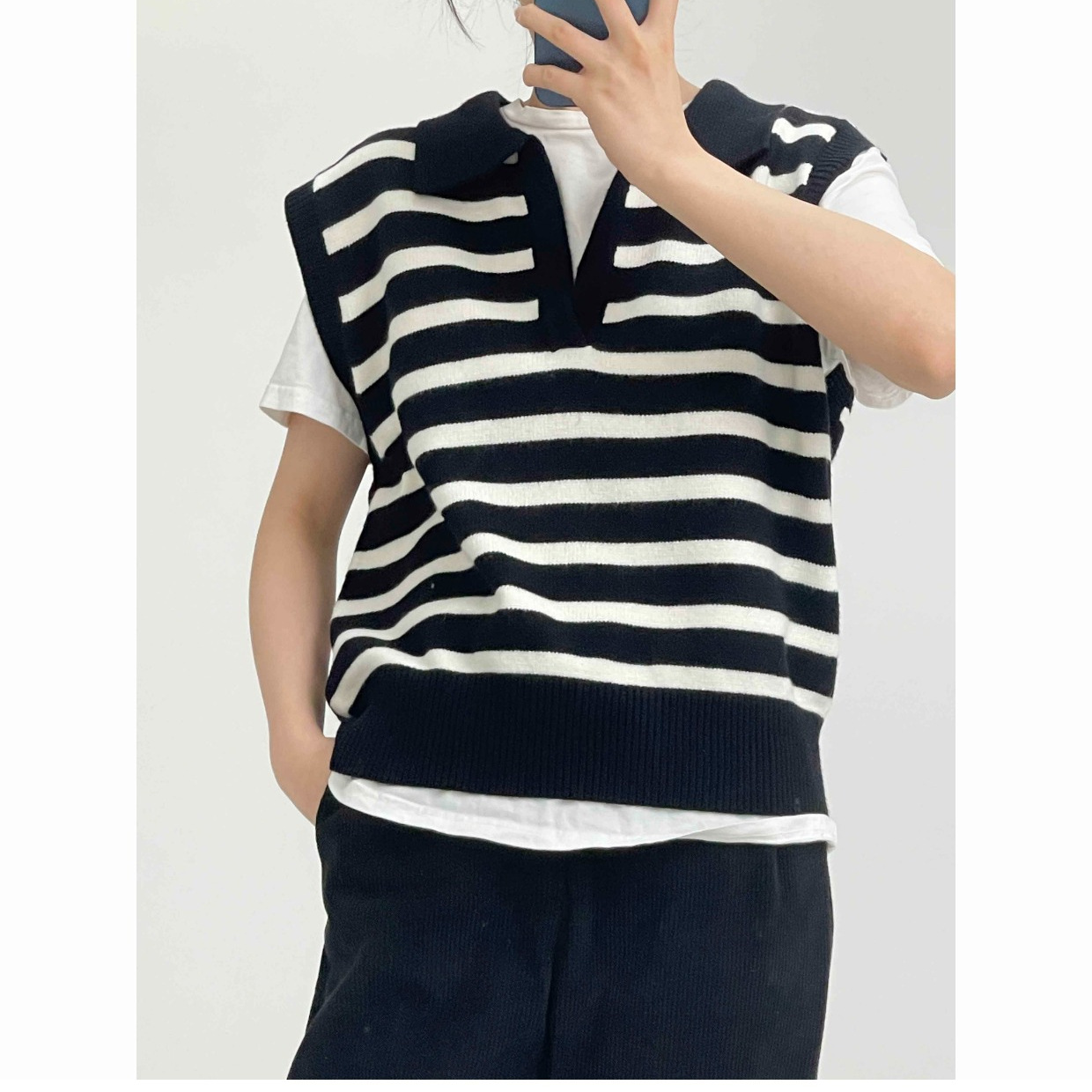 | nameOriginal | Vintage Striped Sweater Vest Women's Spring and Autumn Design Sense Niche Waistcoat Short Sweater Vest Top |