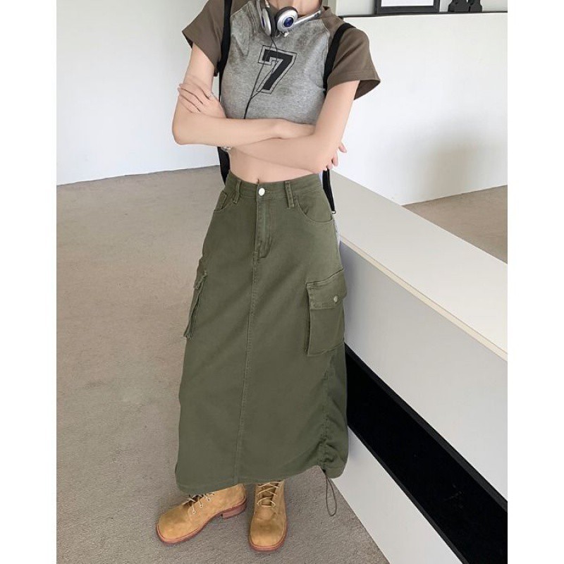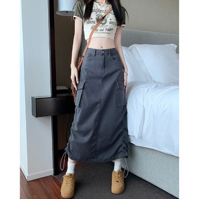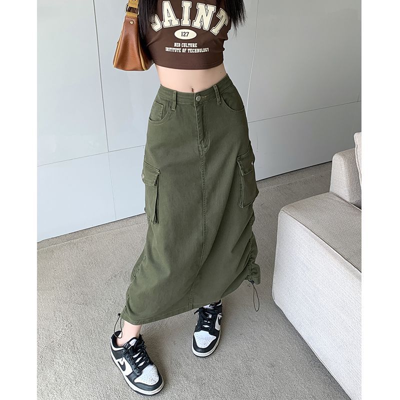| nameOriginal | Vintage Tooling Split Skirt Women's 2024 Autumn New Design Niche Loose High Waist A- Line Skirt |