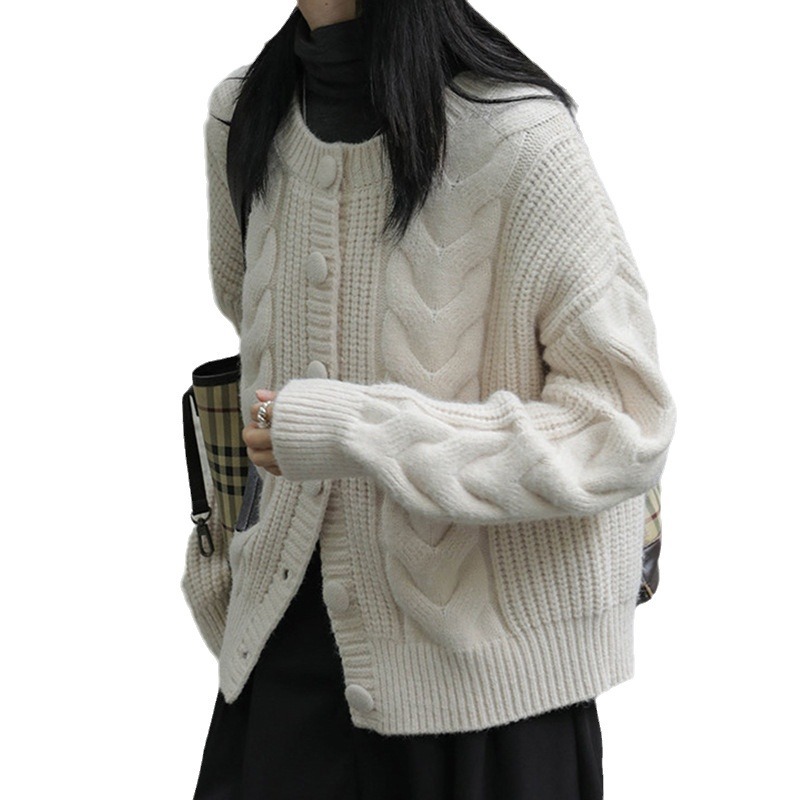 | nameOriginal | Vintage Twist Lazy Soft Waxy Sweater Coat Women's Autumn and Winter Korean Style New Gentle Cross-border Foreign Trade Knitted Cardigan |
