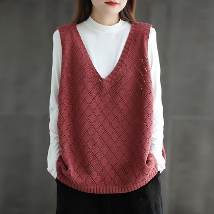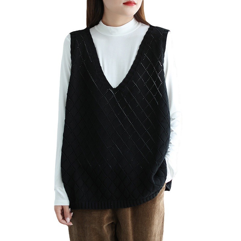 | nameOriginal | Vintage V-neck Loukong Crochet Vest Women's 2024 New Loose Outer Wear Slimming All-match plus size Knitted Vest |