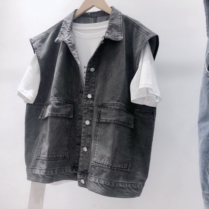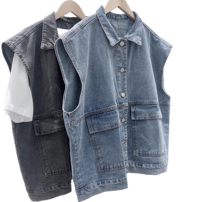 | nameOriginal | Vintage Washed BF Style Tooling Denim Ware Vest Outer Wear Japanese Couple Sleeveless Loose All-match Coat Women |