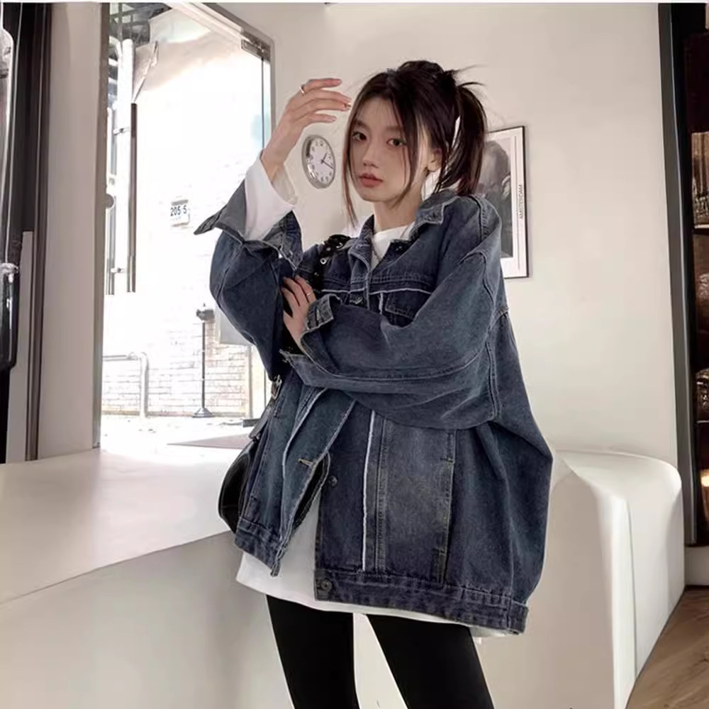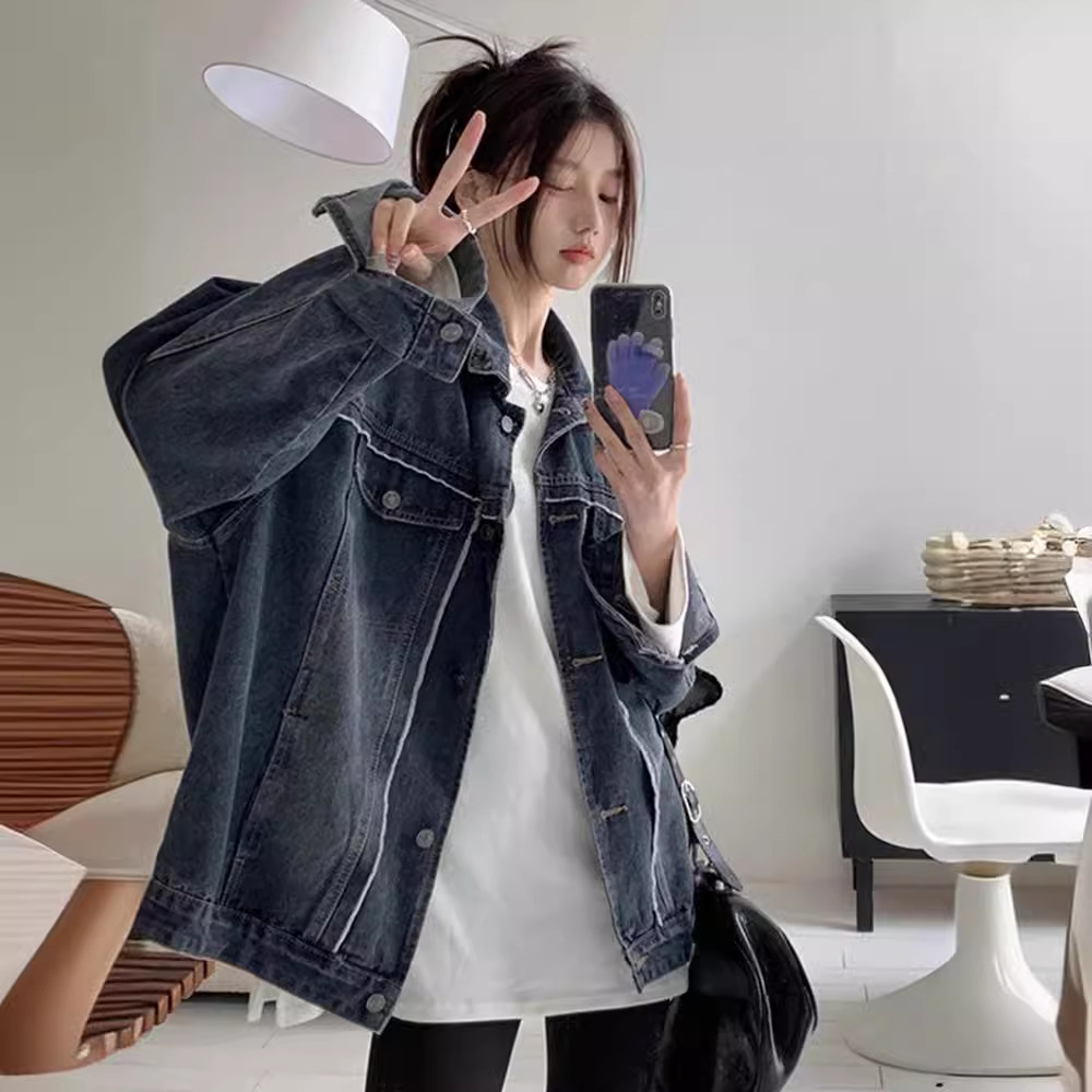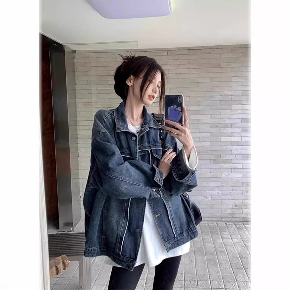 | nameOriginal | Vintage Washed Denim Jacket Women's 2024 New Design Sense BF Style Polo Collar Loose Long Sleeve Top Trendy |