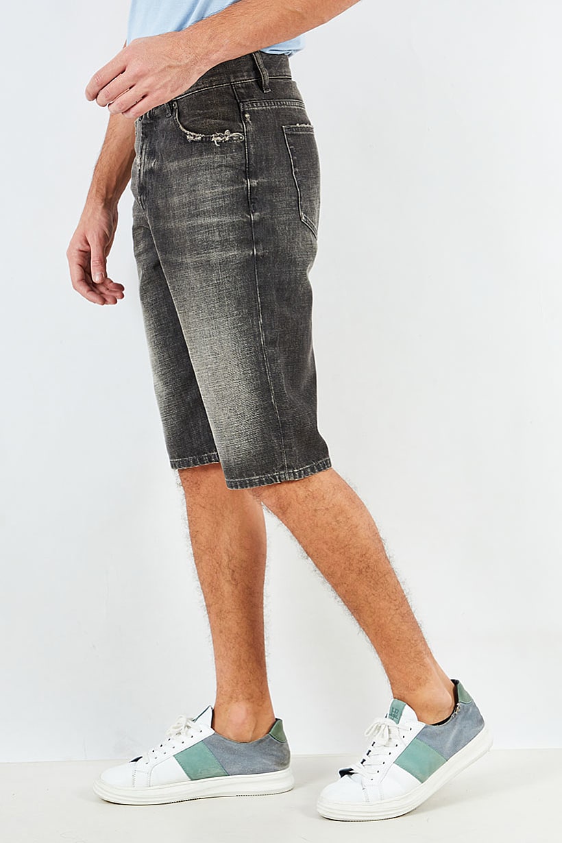 Vintage Washed Denim Shorts for Men in Faded Black, Regular Fit.