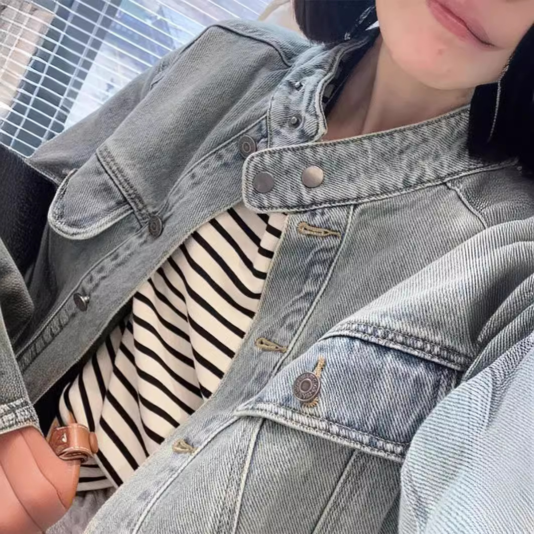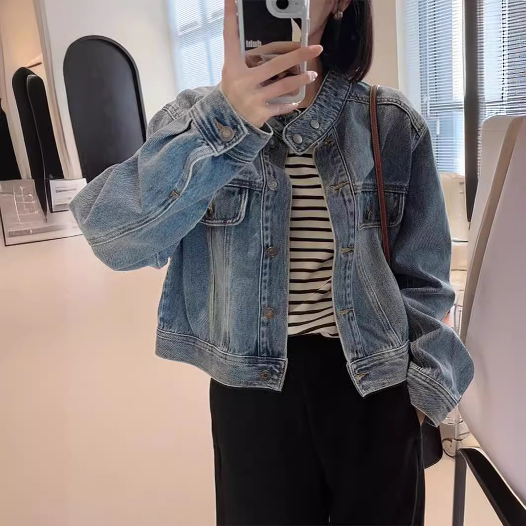 Vintage Washed Small Men’s Vertical Collar Jacket Denim Clothes Women’s Spring New Vertical Collar Slim Look Denim Jacket