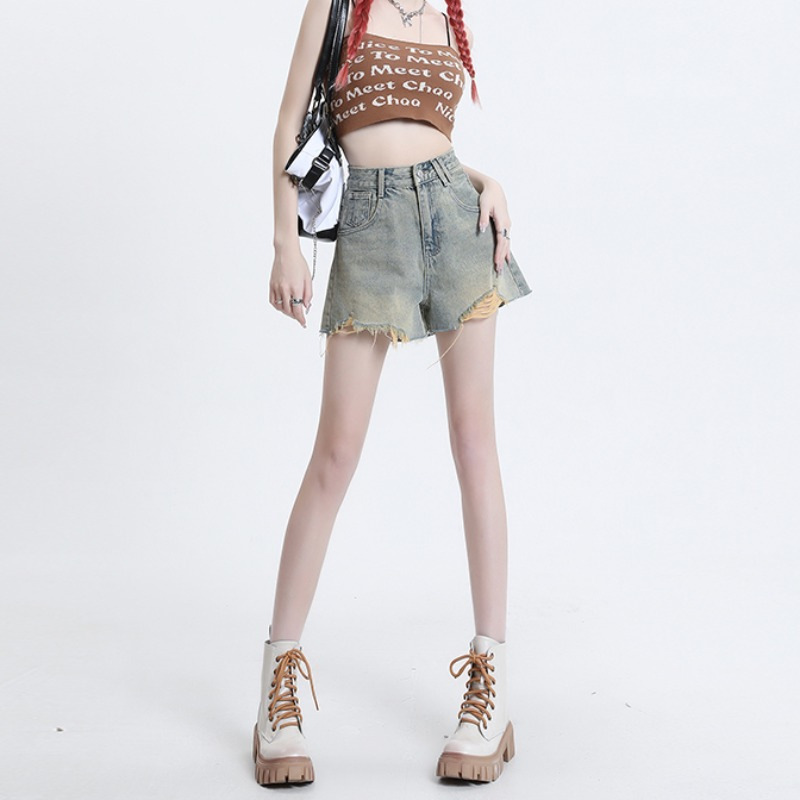 | nameOriginal | Vintage Water Washed Blue High Waist Denim Shorts Women's Summer Irregular Ripped Rapped Edge Hot Girl A- Shown Wide Leg Hot Pants |