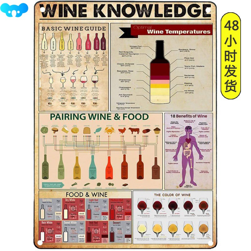 Vintage WINE KNOWLEDGE Print Tin Wall Metal Sign Cross-Border
