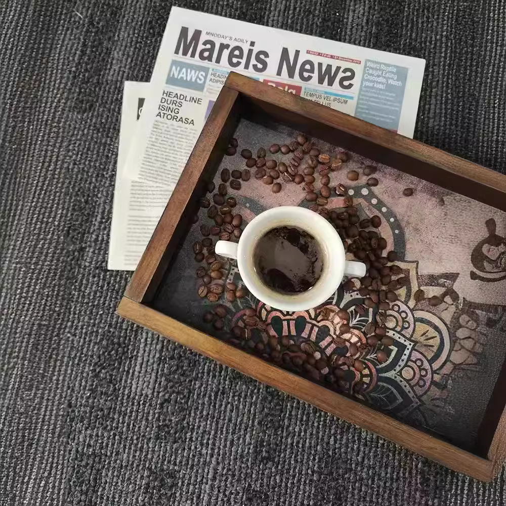 Vintage Wood Solid Wood Plate Rectangular Tray Fruit Plate Creative Japanese Tea Plate Snack Cake Snack Wooden Plate