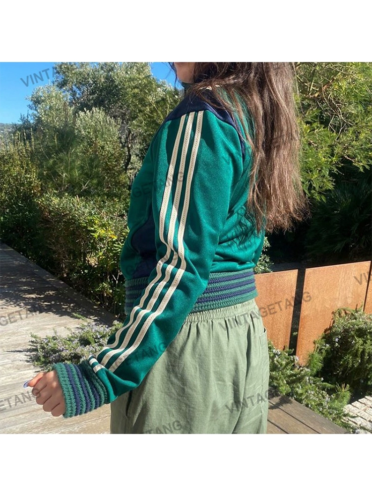 | nameOriginal | VintageTang American retro green short sports sweatshirt jacket trendy ins female couple cardigan hair triple D |