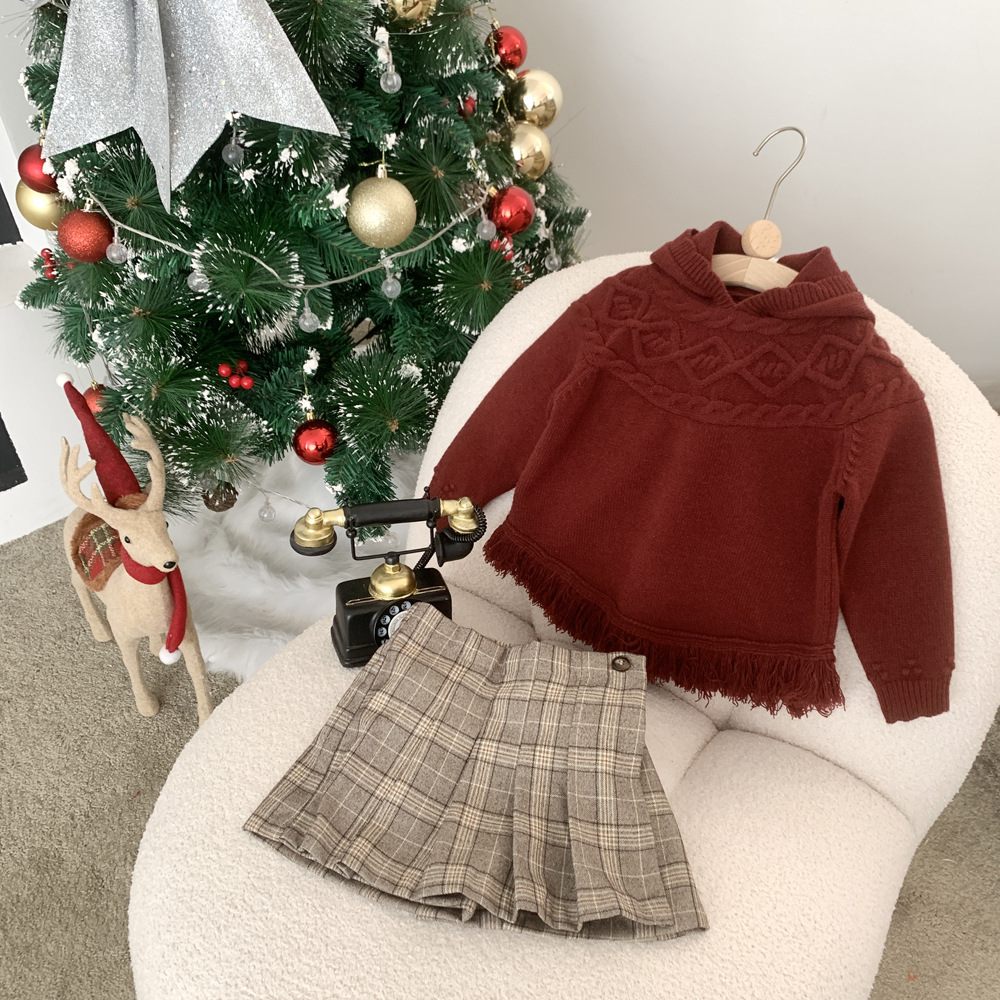 | nameOriginal | virgil kids girls' hooded sweater Spring Festival festive red sweater children's hooded wool cape |