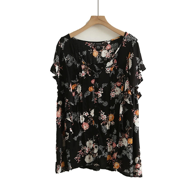 | nameOriginal | Viscose loose pullover black bottom floral summer short sleeves |