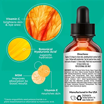 Introducing TruSkin Vitamin C Serum for Face, the ultimate solution for achieving a youthful and radiant complexion. This anti-aging serum is packed with powerful ingredients such as Hyaluronic Acid, Vitamin E, Organic Aloe Vera, and Jojoba Oil that work together to hydrate, brighten, and reduce the appearance of dark spots, fine lines, and wrinkles. The lightweight formula is easily absorbed by the skin, leaving it feeling soft, smooth, and rejuvenated. With regular use, TruSkin Vitamin C Serum for Face will help you achieve a more youthful and radiant complexion that you’ll love. Get ready to say goodbye to dull, tired-looking skin and hello to a brighter, more youthful you!