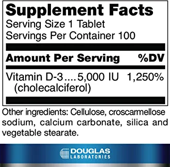 Douglas Laboratories’ Vitamin D supplement offers a potent dose of 5000 IU of vitamin D3 per tablet.