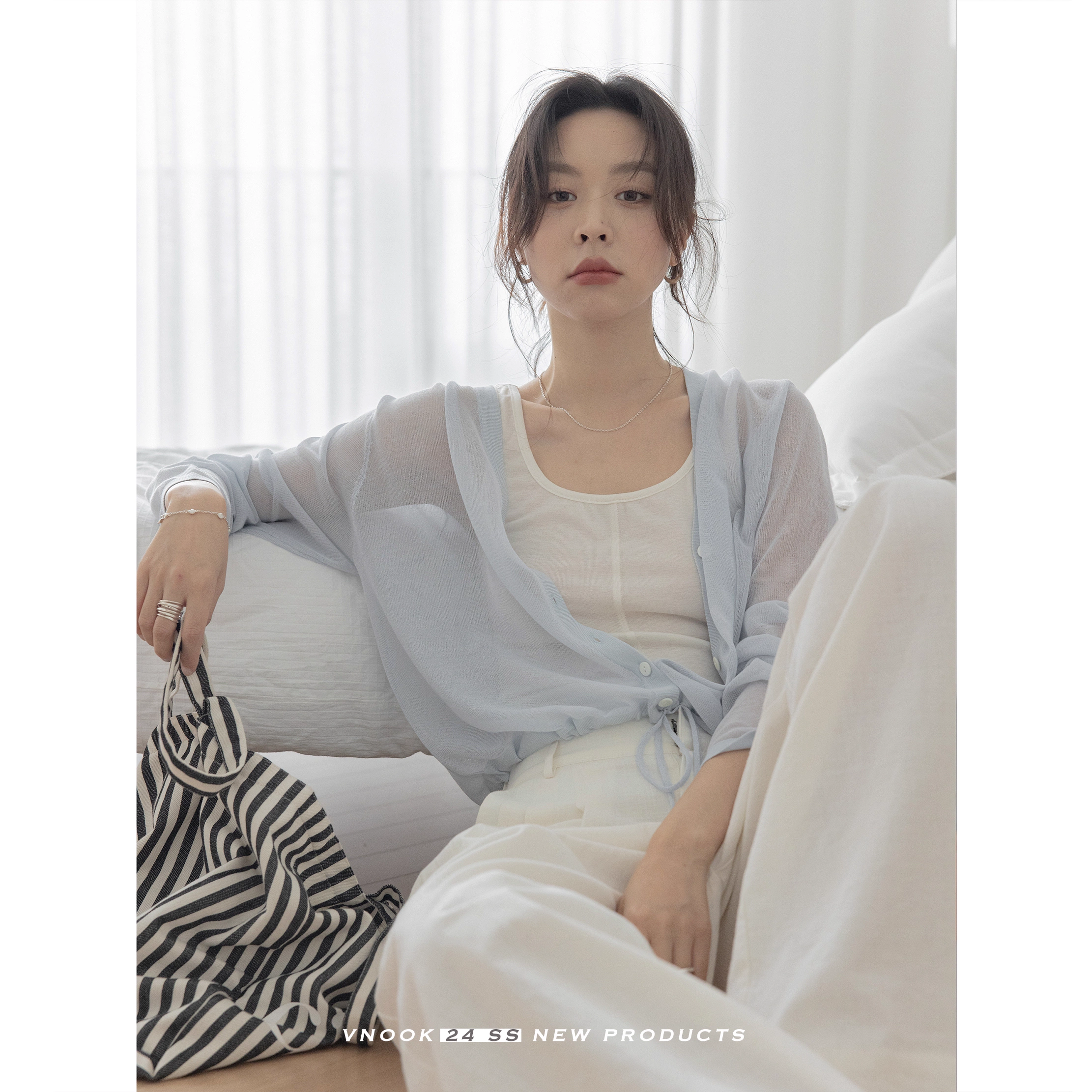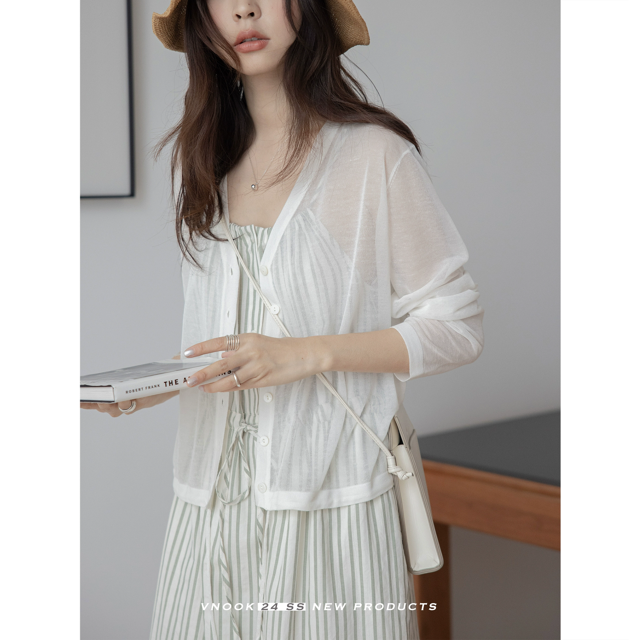 | nameOriginal | VNOOK sun protection knitted cardigan women's 2024 spring and summer linen u-neck waist light and transparent design niche long-sleeved top |