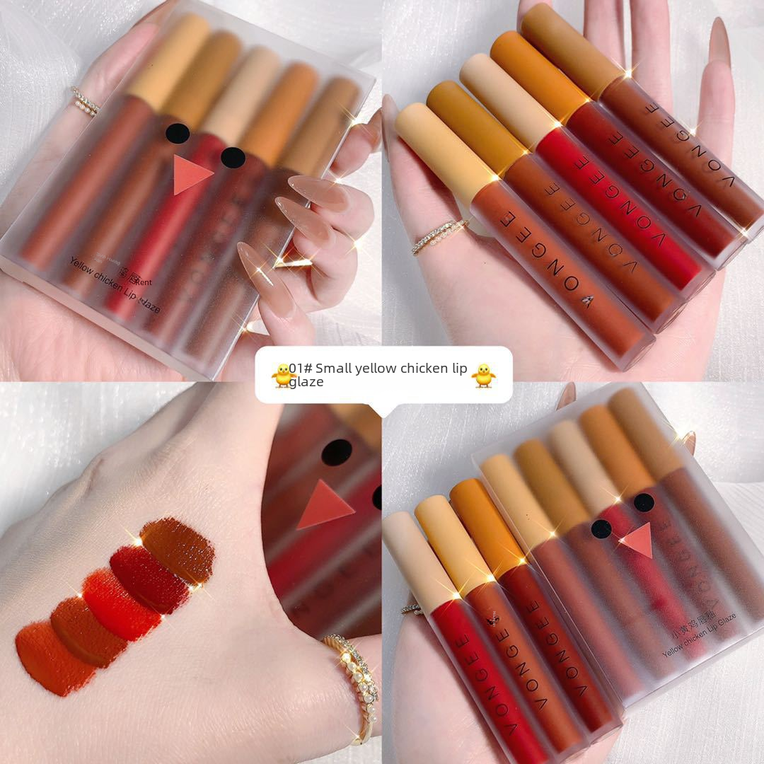 | nameOriginal | VONGEE small black bear small yellow chicken lip glaze set matte matte Matte Velvet White student not easy to stick Cup lipstick |