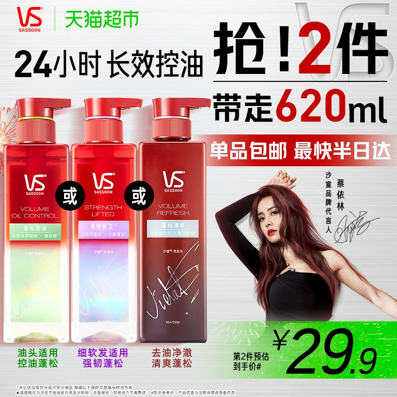 VS Sassoon fluffy bottle shampoo without silicone oil 310ml long-lasting fragrance, oil control, fluffy, strong and upright