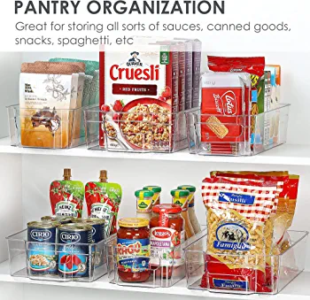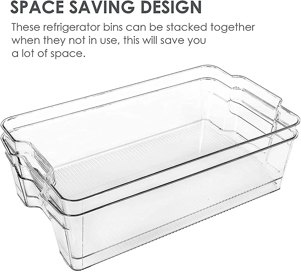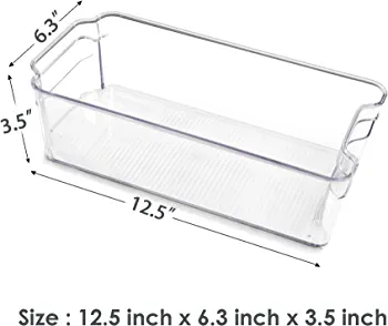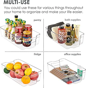 | nameOriginal | Refrigerator Organizer Bins, Vtopmart 4 Pack Medium Clear Plastic Food Storage Bin with Handle for Freezer, Cabinet, Fridge, Kitchen Pantry Organization and Storage, BPA Free, 12.5" Long |