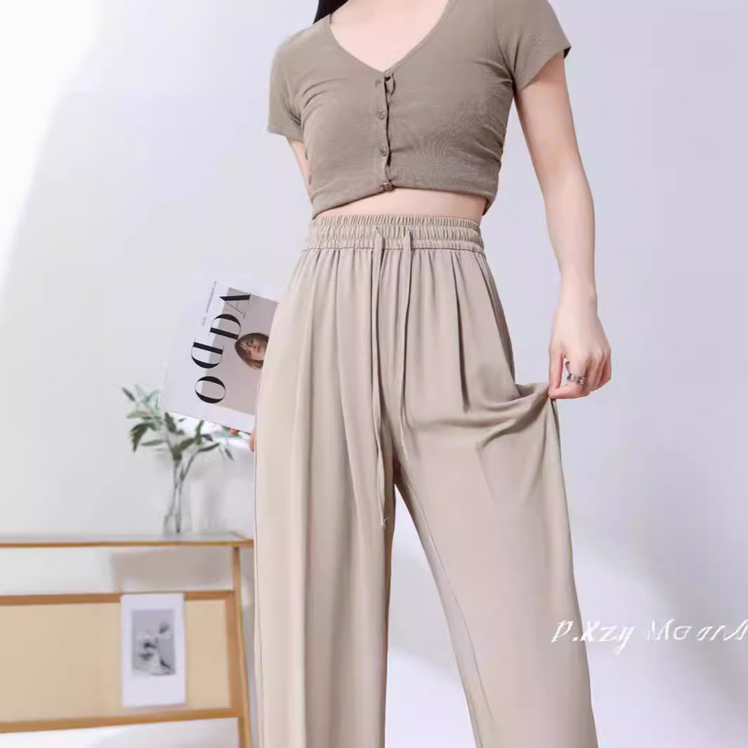 | nameOriginal | W Summer New Women's Sweat Pants Korean Style Casual Tight Waist Tulle Cool Solid Color Loose Wide Leg Pants Women's Trousers |