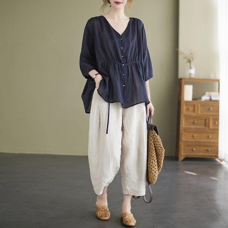 | nameOriginal | W2 plus size Women's Middle-aged Mother Stylish High-end Two-piece Set Noble Cotton and Linen Fashion Casual Shirt Top Summer Set |