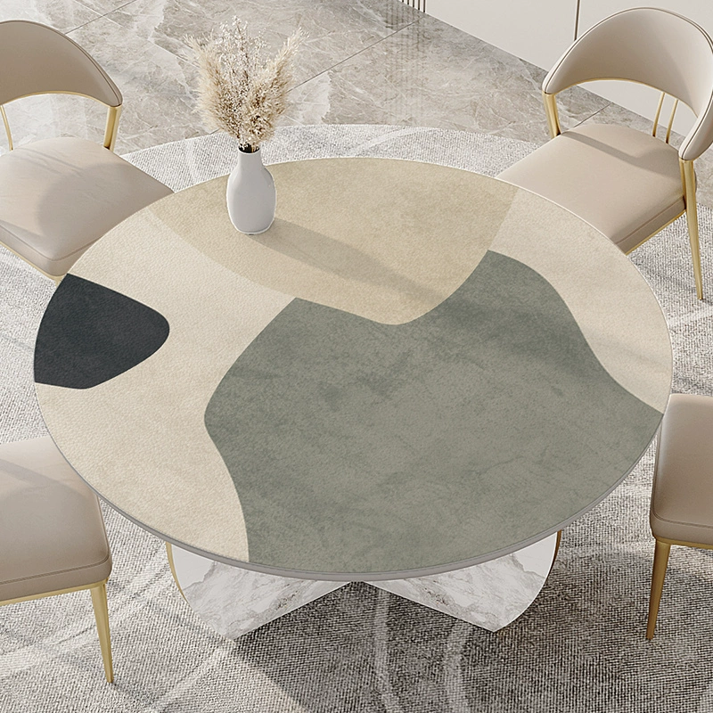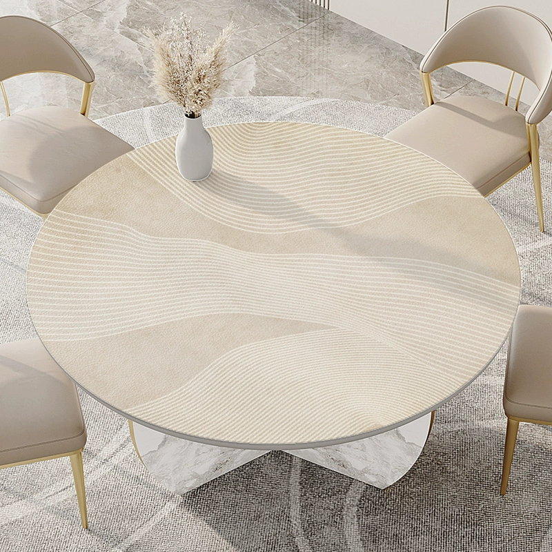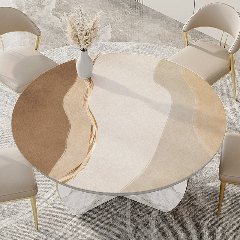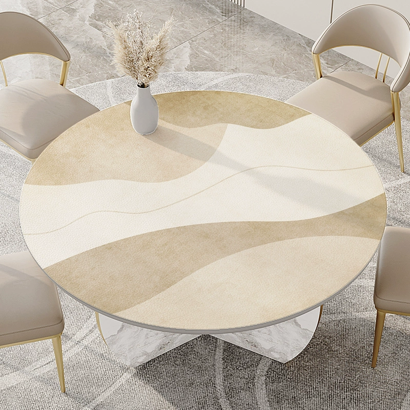 Wabi-sabi style round table tablecloth waterproof and oil-proof wash-free light luxury high-end pvc anti-scalding turntable large round table mat leather