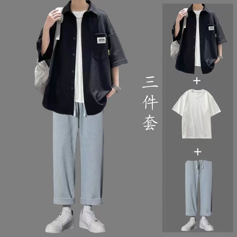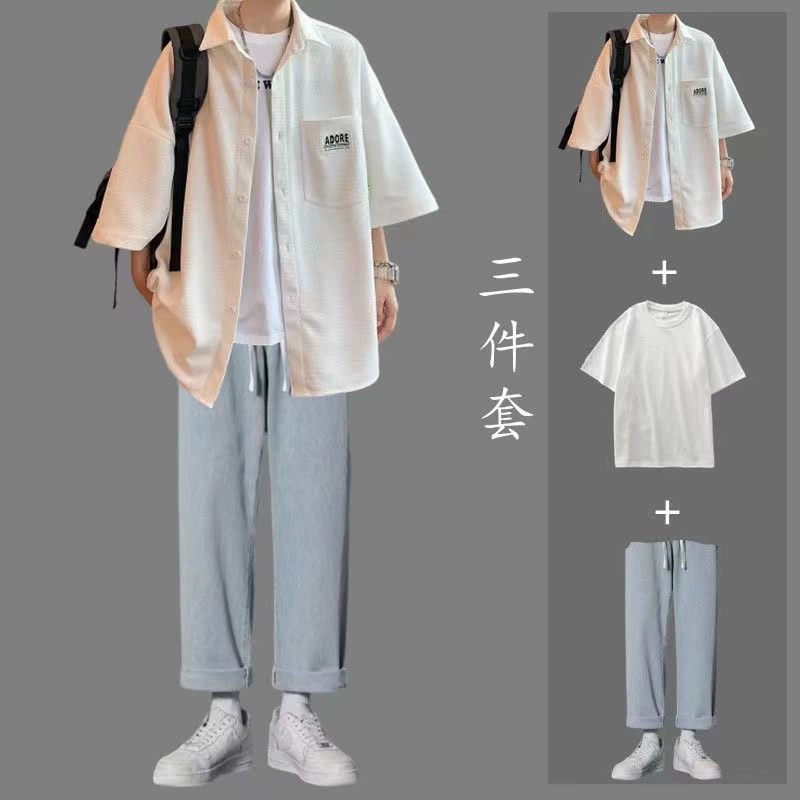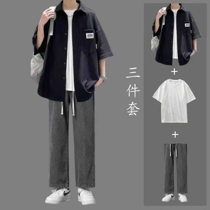 | nameOriginal | Waffle high-end Hong Kong style jeans short-sleeved shirt |