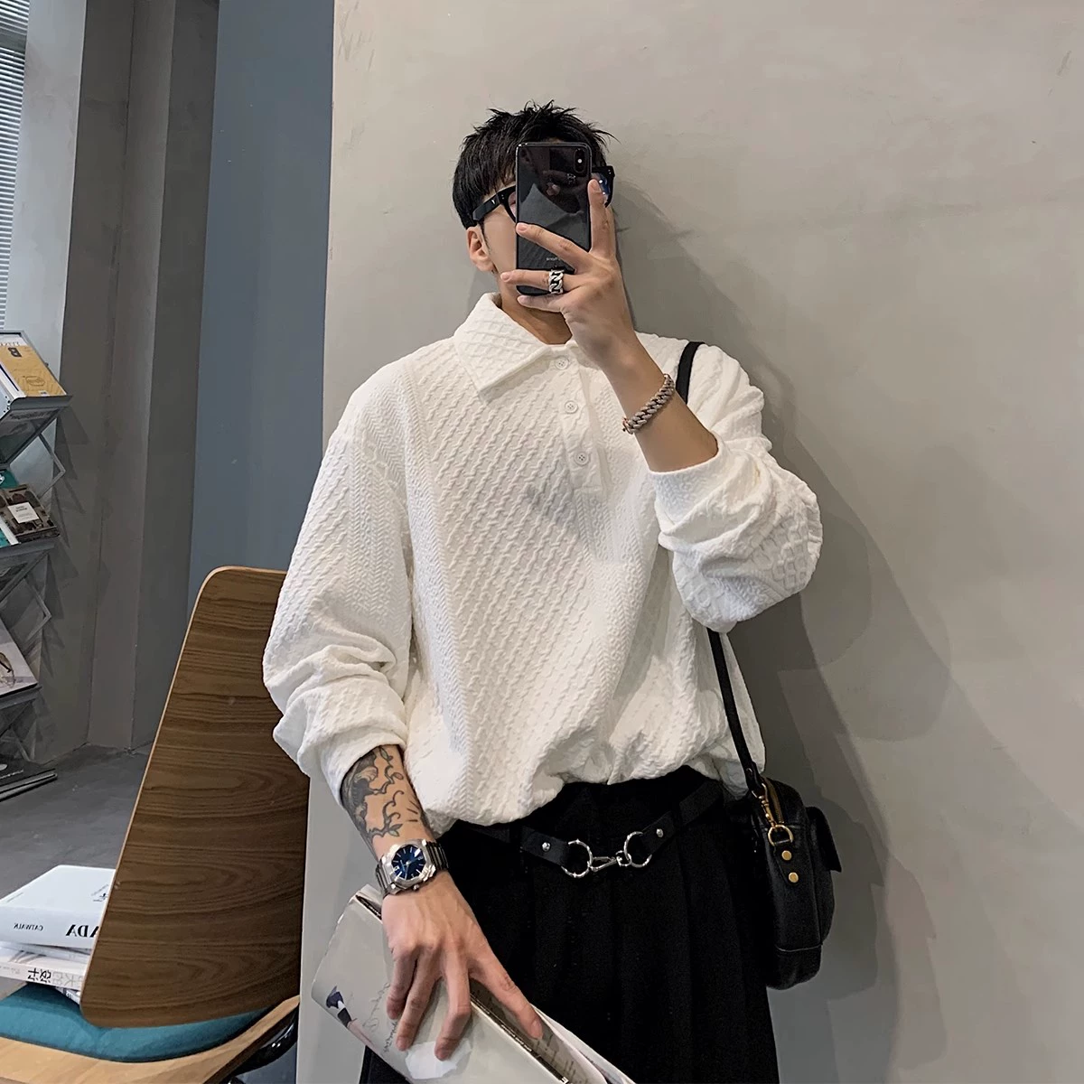 | nameOriginal | Waffle lapel polo shirt autumn casual sweatshirt |