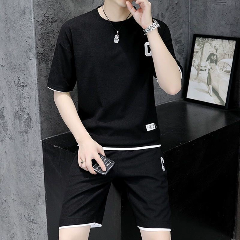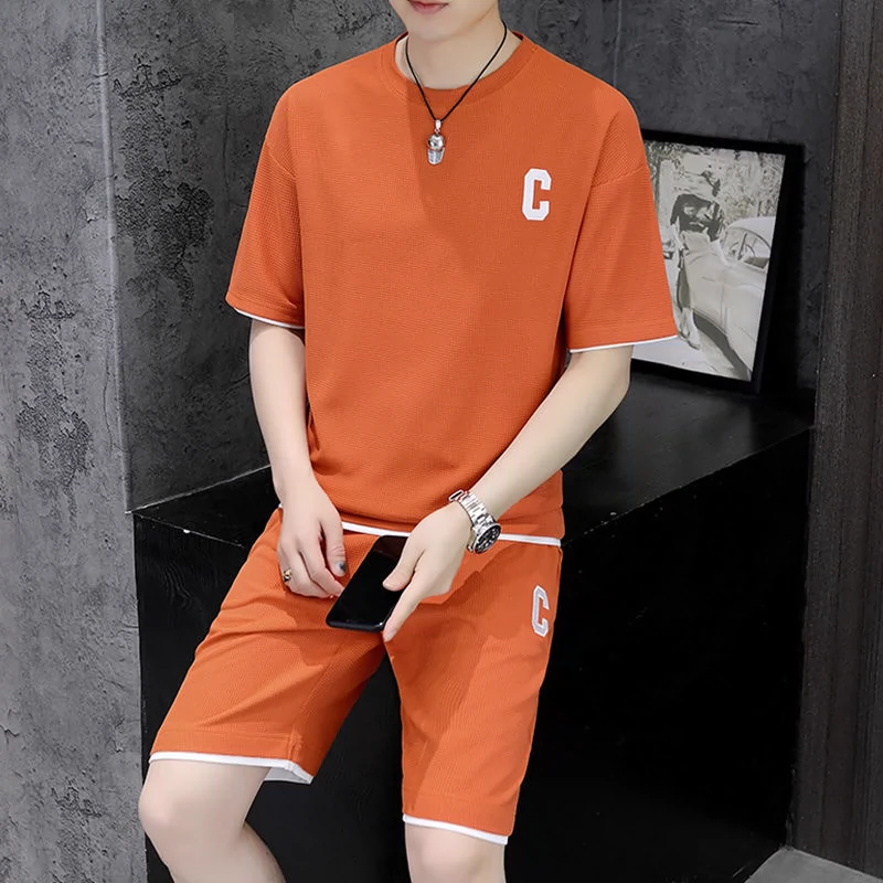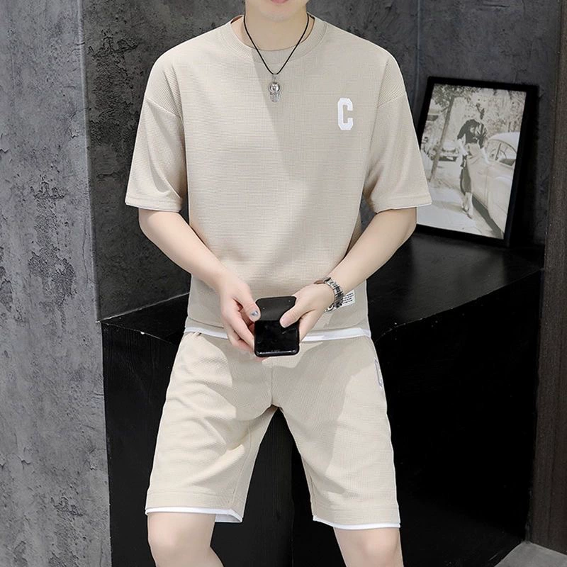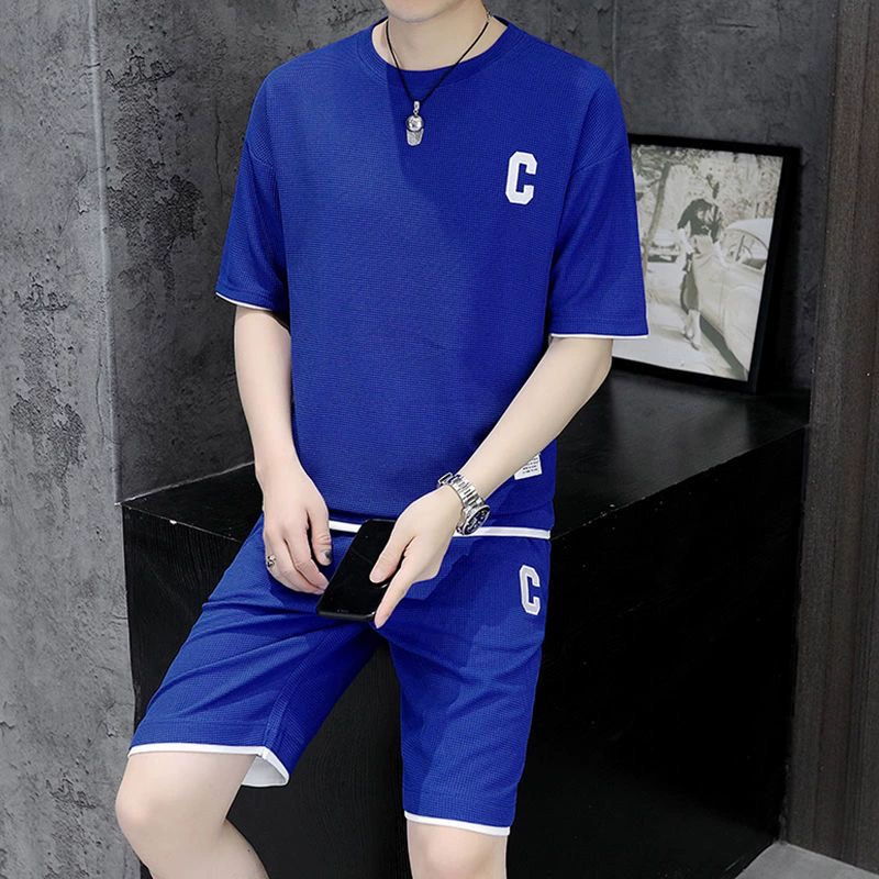 Waffle men’s summer ice silk casual sports suit