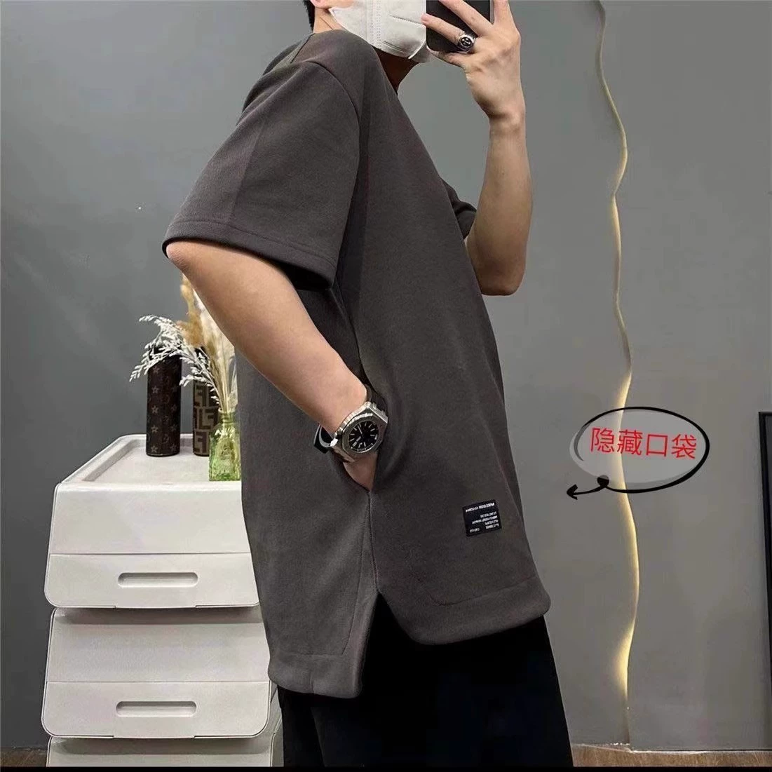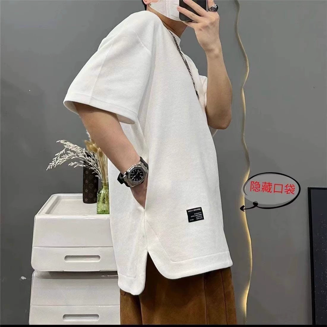 | nameOriginal | Waffle pocket breathable short sleeve trendy plus size T-shirt |