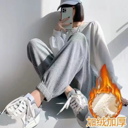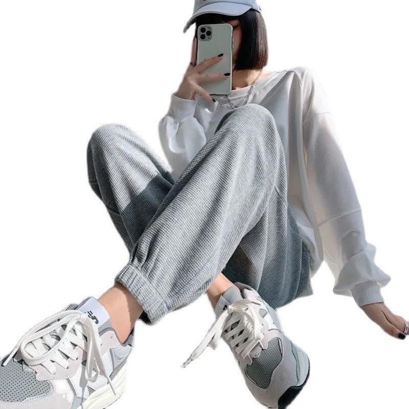 | nameOriginal | Waffle Sports Pants Women's Spring and Autumn Ankle Pants 2021 New Autumn and Winter Fleece-lined Thickened Harlan Grey Sweatpants |
