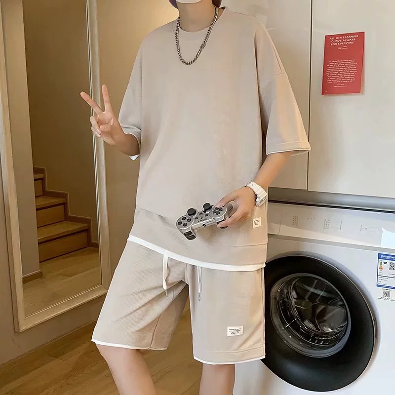 | nameOriginal | Waffle summer handsome large size sports short-sleeved T-shirt |