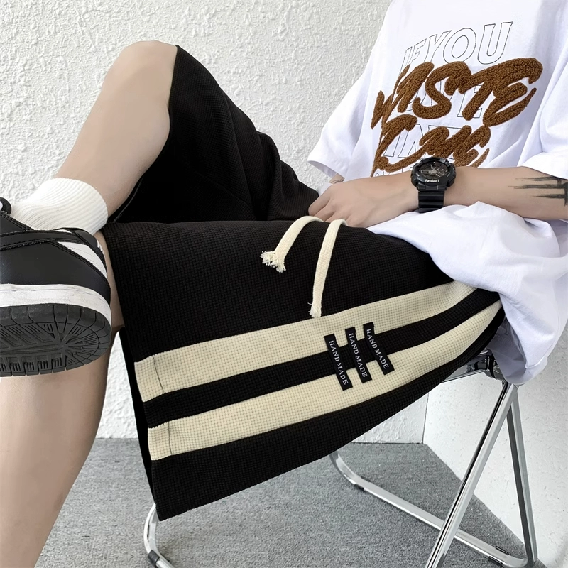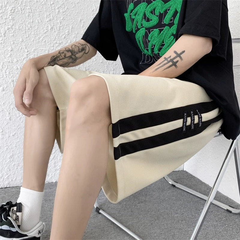 Waffle summer ins contrasting Hong Kong style casual shorts