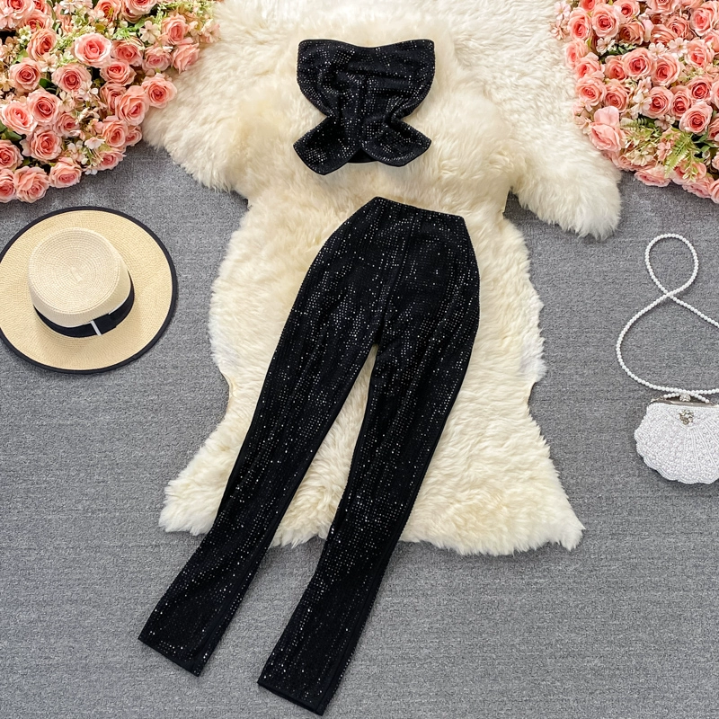 | nameOriginal | Waist-cinching ruffled tube top stretchy leggings trousers with rhinestones |