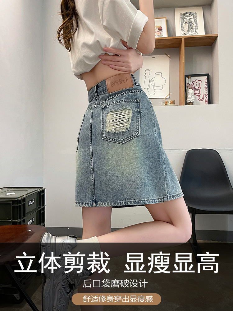 | nameOriginal | Waist Denim Short Skirt Women's 2024 Summer Thin Slimming Abrasive A- Line Hip Skirt Anti-Walking Skirt Women's Skirt |