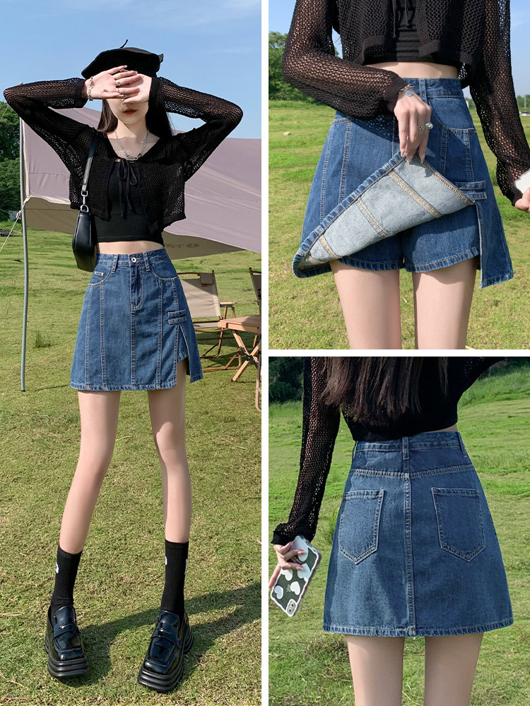 | nameOriginal | Waist Denim Short Skirt Women's Summer Thin 2024 New A- line Small Pants Skirt Hip Skirt Half Skirt |