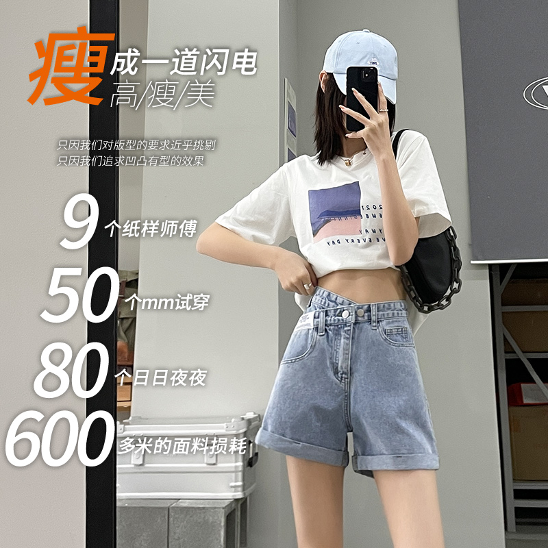 Waist Denim Shorts Women's Summer Thin 2024 New Slimming Spice Girl Small A- line Wide Leg Hot Pants
