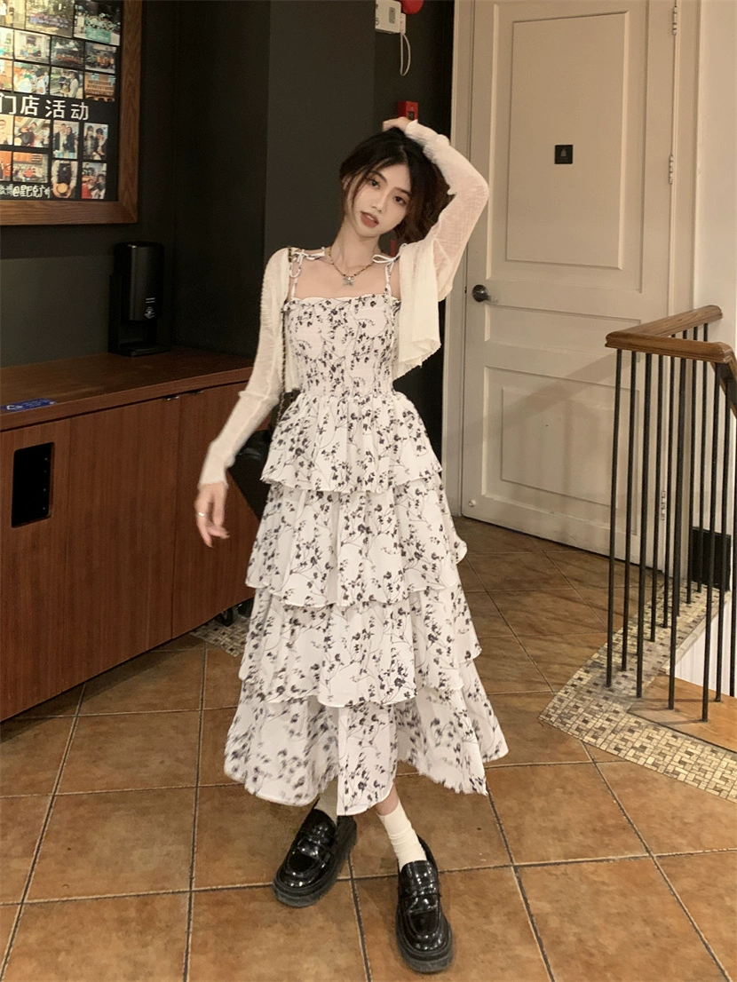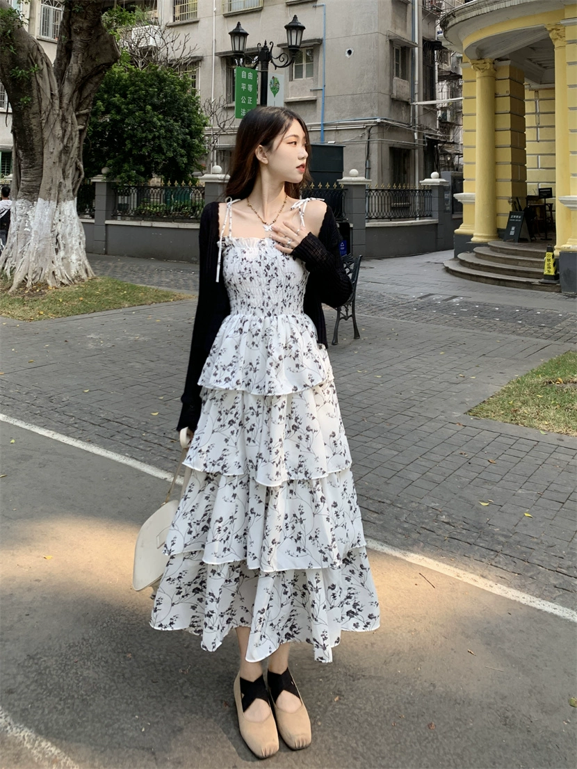 | nameOriginal | Waist layered retro floral suspender women's summer cake skirt |