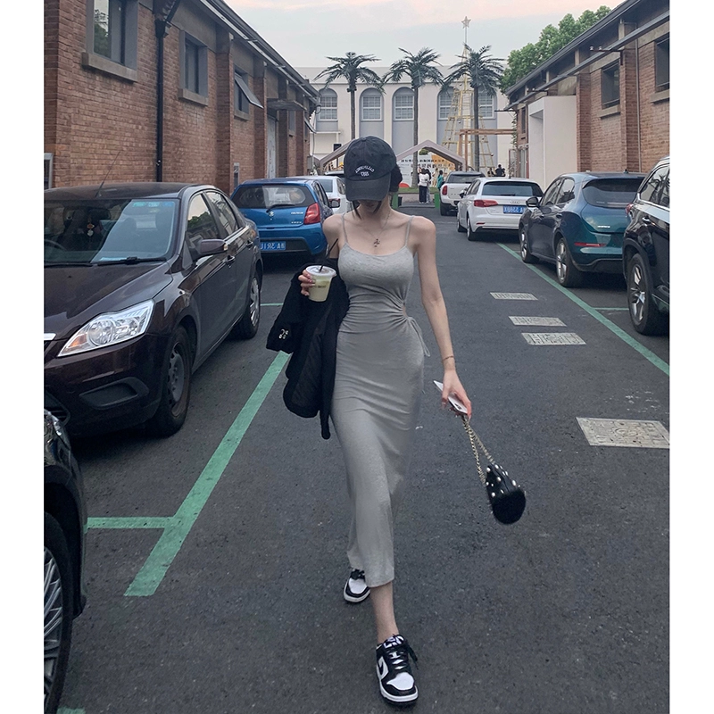 Waist-revealing slim fit hip-hugging summer suspender dress