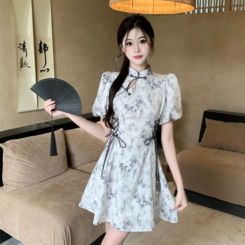 | nameOriginal | Waist slimming and chubby Chinese style A-line short-sleeved dress |