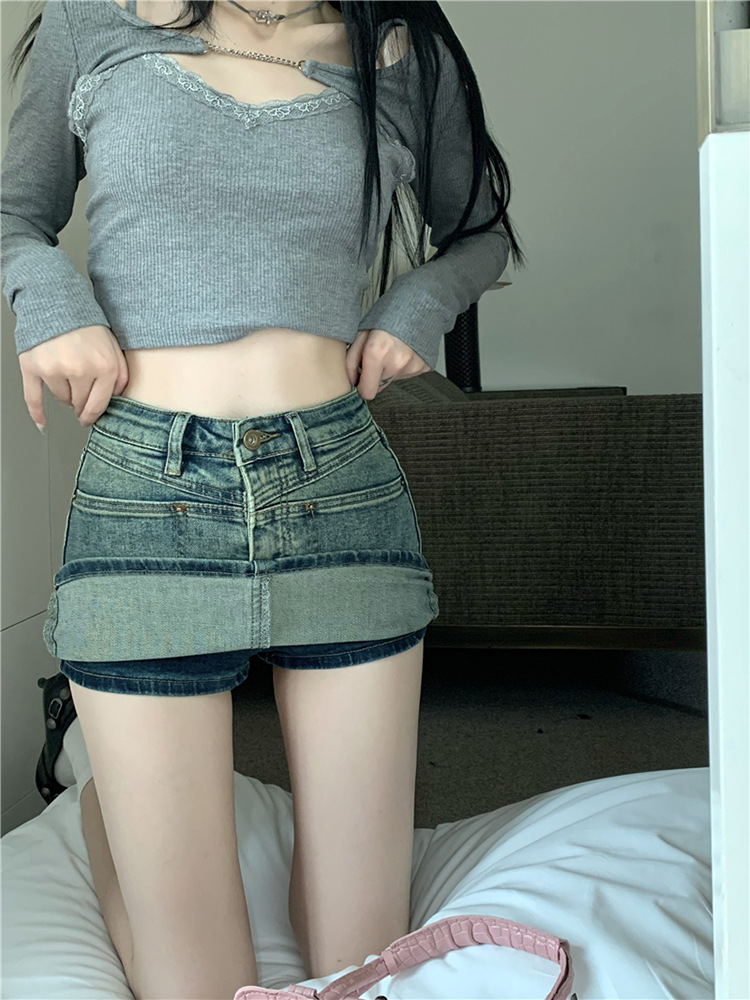 | nameOriginal | Waist Vintage Dressed Culottes Denim Skirt Women's Summer Anti-glare Skirt Small Skirt Hip Skirt |