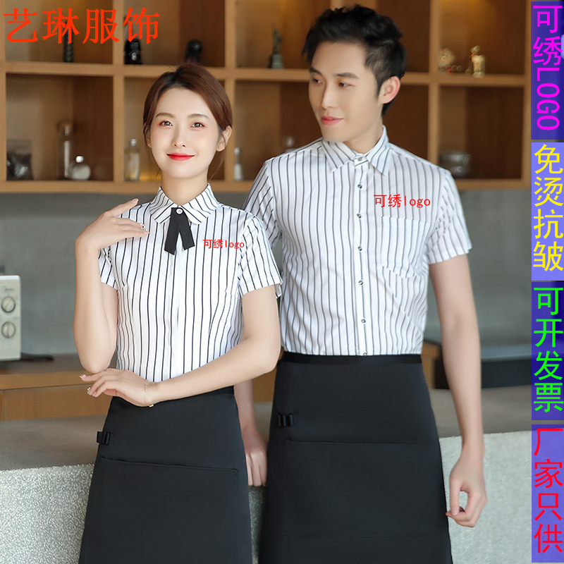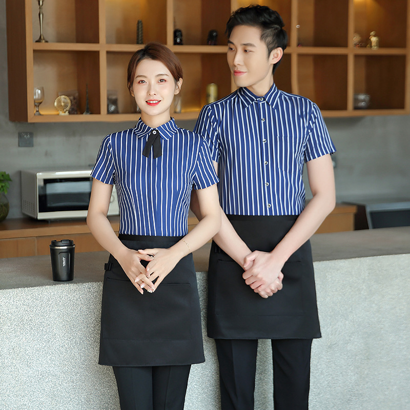 | nameOriginal | Waiter's Work Clothes Short-sleeved Hotel Catering Restaurant Hot Pot Milk Tea Hotel Front Desk Men's and Women's Striped Cashier Suit |
