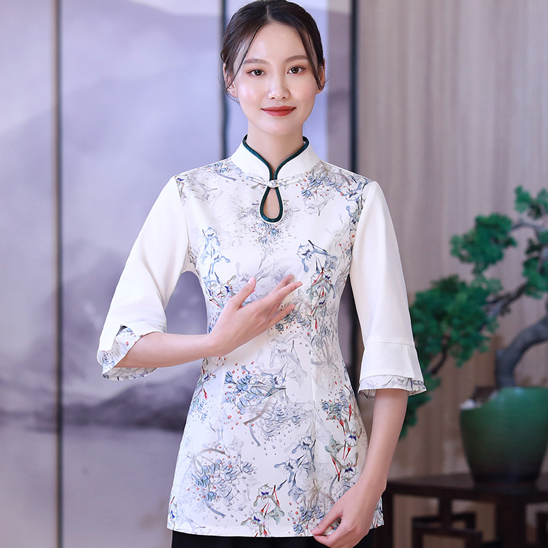 | nameOriginal | Waiter's Work Clothes Summer Short-sleeved Women's Breathable Catering Hot Pot Barbecue Shop Cake Shop Spring Print logo |
