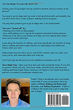 | descriptionOriginal | Are You Ready to Learn the Secret to: Feeling great, living longer, having a positive mindset, and save money in the process? -Watch My Video Below- and see how walking, yes walking for health and fitness, is the easiest way to get in shape and stay in shape. You need to get in shape and you want to feel good physically and mentally, but you don’t know how to start a fitness walking exercise program. You may have joined a gym to get in shape only to be disillusioned: You were “turned off” by: working out in front of other people Learn about the benefits of walking, and more specifically, the benefits of using fitness walking bodyweight exercises to supercharge your health and fitness while you walk. Walk and listen to the FREE AUDIOBOOK, it’s the ultimate in multitasking. Bodyweight exercises allow you to control the workout, time you walk, exercises you do, and when and where you work out. You’ll also tap into your mindset at the same time. Do you know: The Core-Four exercises And so much more! Are you hesitant to give fitness walking exercises a try because you think walking is so easy it won’t get you in shape? Let me dispel that right now. Once you start walking, an amazing process of transformation begins to take place: -The first transformation will be physical as you will begin to feel good! You will feel your body getting into physical condition, you’ll just feel like your muscles have been used. Trust me, you’ll want this feeling to continue. -The second transformation will be your mindset. You’ll begin to think more clearly, you’ll be calmer, boost your creativity, and your problem-solving skills will kick into overdrive. Try this out; before you go out on your next walk, think of a problem you are having. For example, I open my iPhone and create a new note on my Notes app. I dictate the problem at the top of the page then… I do nothing. I just walk, enjoy my surroundings, enjoy the feeling of motion, and enjoy the sense of accomplishing something. Then, suddenly, my mind will drift over to that problem I put down on Notes. When I’m walking, I find my mind just randomly goes someplace other than where I am walking, and in this state, I begin to see solutions to problems I am having. I can’t explain, I see the problem differently and the solutions come quickly when walking. Start Right Now. Open your front door and walk around the block. If you feel as good as I think you will, come back inside and order my book and learn how walking and bodyweight fitness exercises will improve your health and save you money in healthcare-related costs. A Personal Note From The Author: This book blends 21 years of coaching experience with my love of fitness and the need to overcome a serious back injury. That’s why I’ve put together Fitness Walking and Body Weight Exercises. It is my intention to get you walking, exercising your body, and helping you create a positive mindset. Read the Look Inside feature. Walk on, Frank Read more |