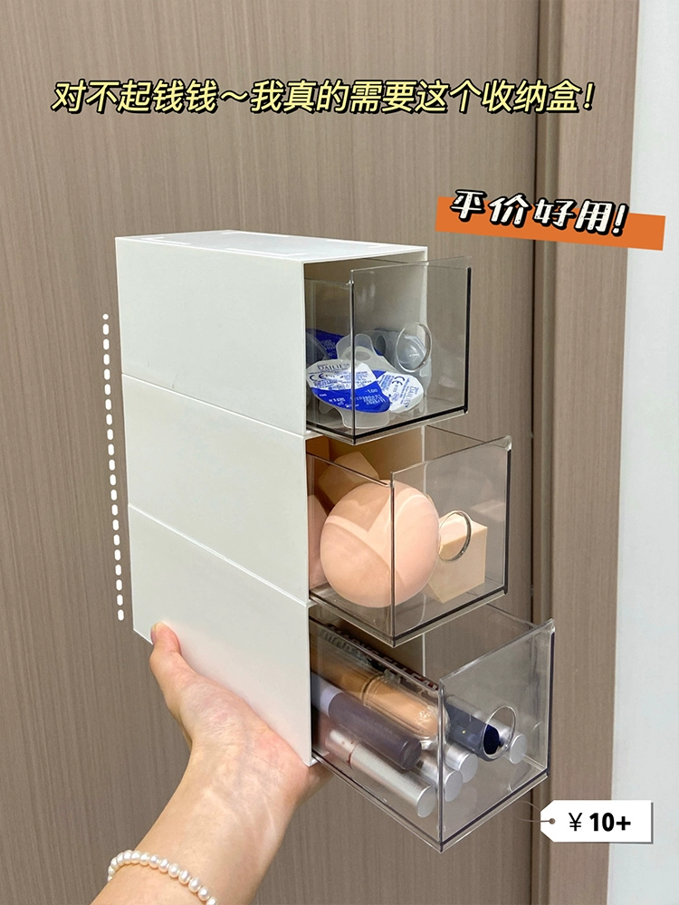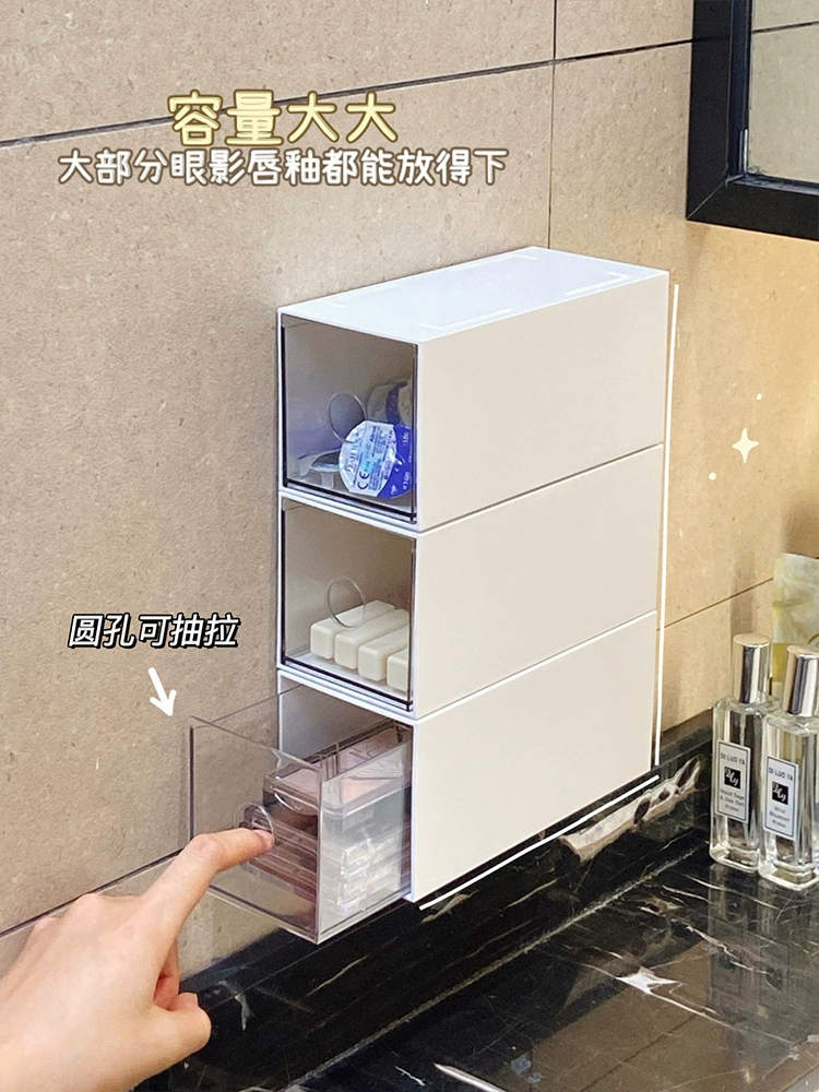 | nameOriginal | Wall-mounted cosmetics storage box ins simple dust-proof bathroom desktop drawer transparent bathroom powder puff eyebrow pencil box |